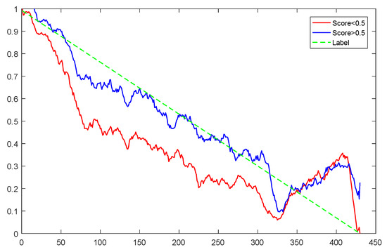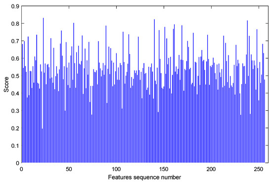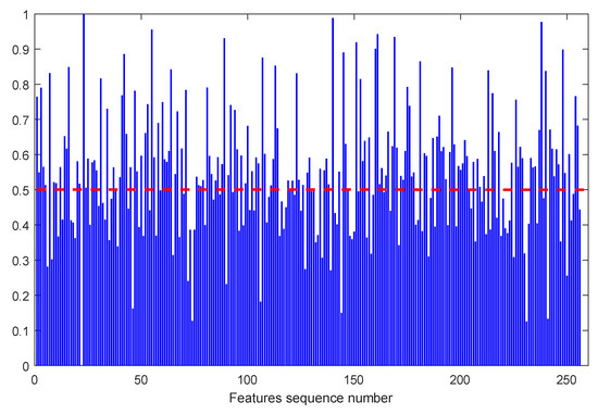 The 256 scores calculated from 256 feature sequences were normalized, and the calculation results are shown in Figure 15. The threshold value was selected as 0.5, and the feature with a normalized score above 0.5 was retained.