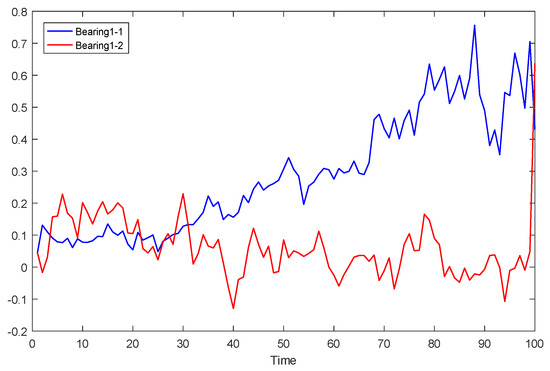 From the above calculation process, it can be seen that the trend consistency index score of the feature series is relative, and the feature series with a high score is more consistent in different bearings than the feature series with a low score.