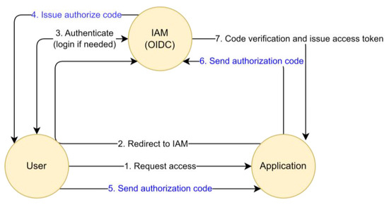 - The application requests the IAM server to change the authorization code into an access token. The application also appends the verification code to the request;