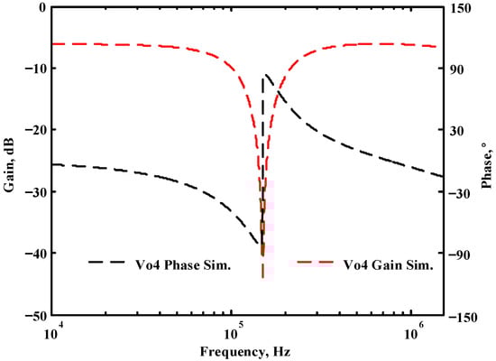 Simulation results for the AD844-based voltage-mode UAF at Vo4 BR filter.