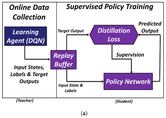 - Rusu, A.; Gómez, S.; Gulcehre, C.; Desjardins, G.; Kirkpatrick, J.; Pascanu, R.; Mnih, V.; Kavukcuoglu, K.; Hadsell, R. Policy Distillation. arXiv 2015, arXiv:1511.06295. [Google Scholar]