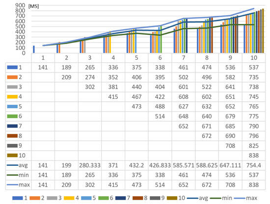Figure 23 shows the RTTs of deploying to multiple platforms using a device proxy. With the increased number of platforms, the latency of each deployment is increased according to the averages. The requests are performed asynchronously. Therefore, the maximum latency is the total delay time for deploying to all platforms through the device proxy.