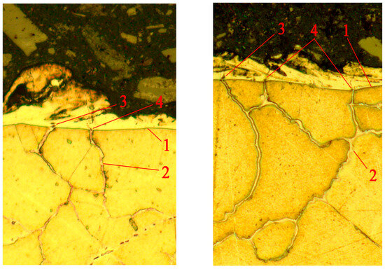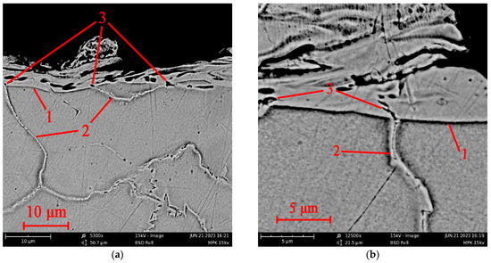 - During the study of the white layer using a scanning electron microscope, an example of the development of cracks was found not from the white layer towards the base material but in the opposite direction. This allowed us to assume the existence of a mechanism for forming cracks in the white layer due to different coefficients of thermal expansion of the base material and the white layer. This leads to the stretching and consolidation of the pores of the white layer and the formation of cracks.