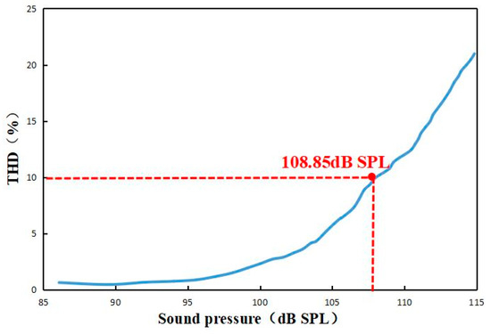 The optimized fabricated sensor was applied to the whole system, and a comprehensive standard acoustic test was conducted in a semi-anechoic chamber environment, as shown in Figure 14. The optical power of the light source was adjusted to 1.5 mW, and the wavelength of the incident light incident to the F-P cavity was adjusted to the optimal value of 1550.88 nm from the above experiments. The results of the acoustic indices are shown in Figure 15, Figure 16 and Figure 17.