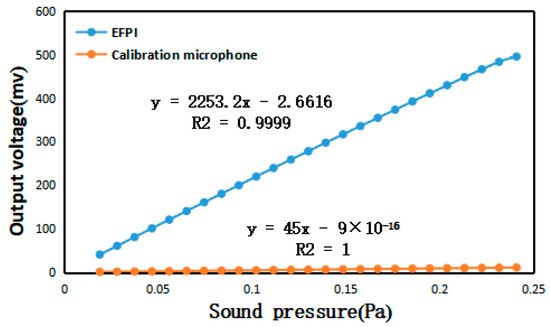 The experimental results show that this type of sensor has an excellent performance of high sensitivity, good sound quality, and high audio discrimination. The interference intensity spectral contrast can reach 27.9 dB, which causes the sensor to have a high sensitivity of up to 2253.2 mV/Pa, which is about 50 times that of a standard electric microphone. The SNR and AOP can reach 108.85 dB SPL and 79.22 dB, which are much higher than other fiber-optic acoustic pressure sensors of the same type.