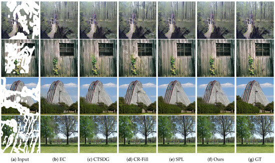 - Li, J.; He, F.; Zhang, L.; Du, B.; Tao, D. Progressive reconstruction of visual structure for image inpainting. In Proceedings of the IEEE/CVF International Conference on Computer Vision (ICCV), Seoul, Republic of Korea, 27 November–2 December 2019; pp. 5962–5971. [Google Scholar]