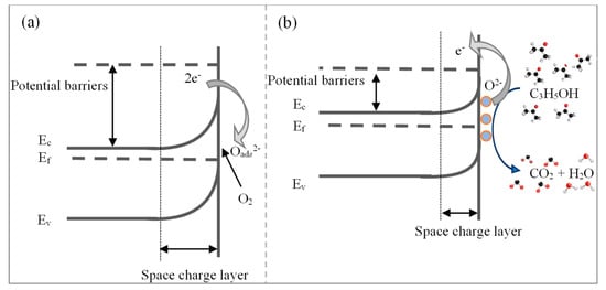 - Staerz, A.; Weimar, U.; Barsan, N. Current state of knowledge on the metal oxide based gas sensing mechanism. Sens. Actuators B Chem. 2022, 358, 131531. [Google Scholar]
