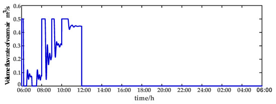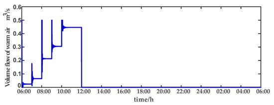 Volume flow rate of warm air () under the traditional PID control strategy.