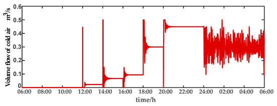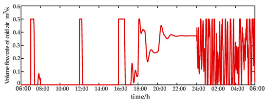 Volume flow rate of cold air () under the traditional PID control strategy.