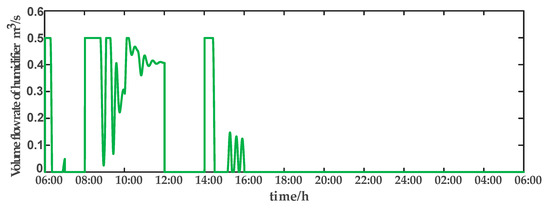 Volume flow rate of humidifier () under the nonlinear adaptive decoupling control strategy.