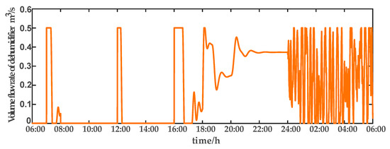 Volume flow rate of dehumidifier () under the traditional PID control strategy.