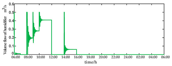 Volume flow rate of humidifier () under the traditional PID control strategy.