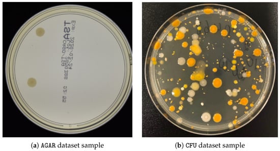 - Majchrowska, S.; Pawłowski, J.; Guła, G.; Bonus, T.; Hanas, A.; Loch, A.; Pawlak, A.; Roszkowiak, J.; Golan, T.; Drulis-Kawa, Z. AGAR a microbial colony dataset for deep learning detection. arXiv 2021, arXiv:2108.01234. [Google Scholar]