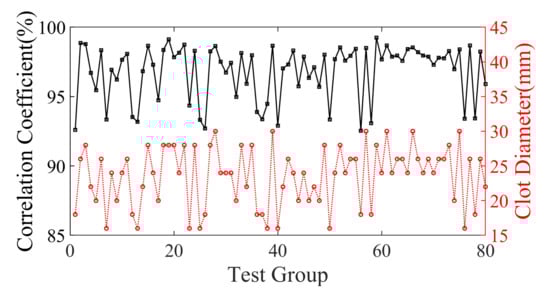 The set of 80 test samples was categorized into three distinct groups based on clot size, and Table 1 exhibits the distribution of PC findings. The statistical outcomes elucidate that as the clot diameter decreases, the PC also experiences a decline, thereby causing a slight diminishment in the quality and resolution of the reconstructed image. Nonetheless, the impact of this reduction is negligible.