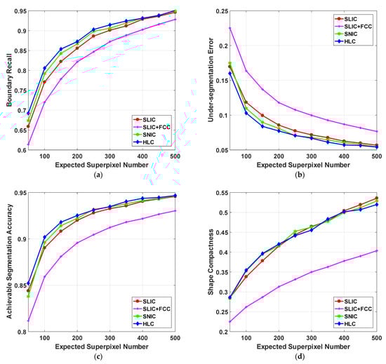and also uses region information to evaluate the performance, as with UE. A higher ASA value indicates that the performance of superpixels in subsequent iterations are unaffected [].