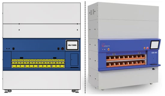 - Roodbergen, K.J.; Vis, I.F.A. A survey of literature on automated storage and retrieval systems. Eur. J. Oper. Res. 2009, 194, 343–362. [Google Scholar] [CrossRef]