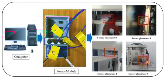 The data acquisition was carried out on the SAR-400 model vertical carousel storage and retrieval system (VCSRS) with vibration sensors placed as shown in Figure 5. The vibration data were collected at four vibration sensors using the NI 9234 model and processed using the python programming. The system specification includes 32 GB RAM, an NVIDIA GeForce RTX 3060 3.20 GHz processor, and a 64-bit operating system with an x64-based processor.