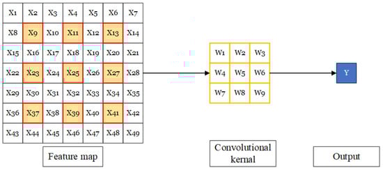 A standard convolutional operation is shown in Figure 10. It is the usual sliding window operation, where the elements in the window are always adjacent elements in the input feature map. In Figure 10, we use a convolutional kernel with a size of as an example; the RF of this convolutional layer is 3.