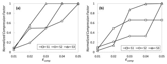The first numerical study is focused on evaluating the performance of the AAC procedure in Algorithm 1 once the AE pool of every DA has been trained with the telemetry data of its specific sensor. Figure 5 shows the compression factor as a function of target reconstruction error εcomp for both normal operation (Figure 5a) and operation with perturbations (Figure 5b) after 9 h of simulated time (~32,000 monitoring samples per sensor). The compression factor was normalized between 0 and 1, where 0 means that the AAC cannot compress any measurement below the target εcomp and 1 means that all measurements are compressed with the AE with the lowest LS size (in our case, 4). As can be observed, the AAC shows the desired adaptability, sharply increasing the compression factor when εcomp is relaxed. Interestingly, we can observe that different time series produce different compression performances, even when AEs were specifically trained for that data. However, maximum compression is always achieved with low reconstruction error (0.05) under normal system operation and remains very high when perturbations appear in the system, which validates the applicability of the proposed method in systems subject to changes in the telemetry data generated.