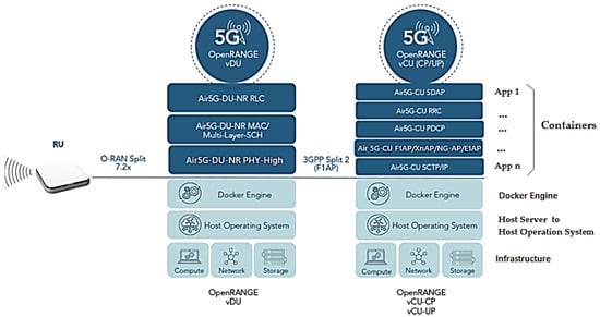 The remote unit (RU) hosts the L1 layer and the lower PHY-Low sublayer in real time, and the vCU is responsible for non-real-time functions such as RAN resource management, encryption and retransmission. Normally, a single vCU can manage many DUs, and a single DU can connect to multiple RUs [24].