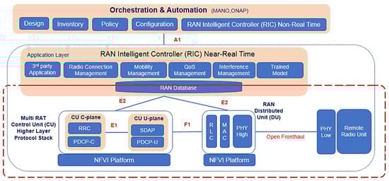- Wypiór, D.; Klinkowski, M.; Michalski, I. Open RAN—Radio Access Network Evolution, Benefits and Market Trends. Appl. Sci. 2022, 12, 408. [Google Scholar] [CrossRef]