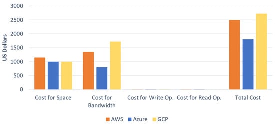 Cloud storage costs might vary widely depending on a company’s needs. Everything from retrieval frequency and storage capacity to network bandwidth affects the cost. We collected and normalized cost data for the three providers in order to be able to compare costs across these providers under different usage scenarios. Mainly, the cost of data storage depends on the amount of data stored, the amount of data transferred through the network, and the number of data transactions. Further, there are multiple storage tiers, each of which has a different pricing structure. Similarly, network usage costs vary depending on whether data are transferred within or outside of the cloud network.