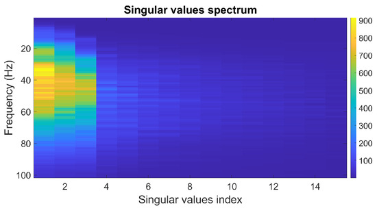 Singular-value spectrum. The color bar represents the magnitude of the singular values.