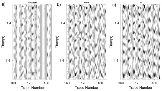 (a) Input real data, (b) interpolation result of applying TRR approach, (c) interpolation result of applying the AWRR method.