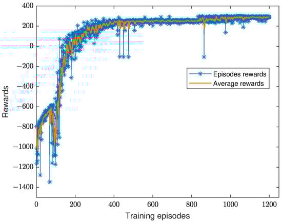 To demonstrate the convergence of the AoI optimization algorithm for AUV data collection, in Figure 3, we show the variation of the cumulative reward, where the X-axis represents the number of iterations trained and the Y-axis presents the cumulative reward. It can be seen that in the early stages of training, the cumulative reward values are very low due to the high chance of -greedy random exploration. As the training period continues to increase, the reward value gradually increases and stabilizes.