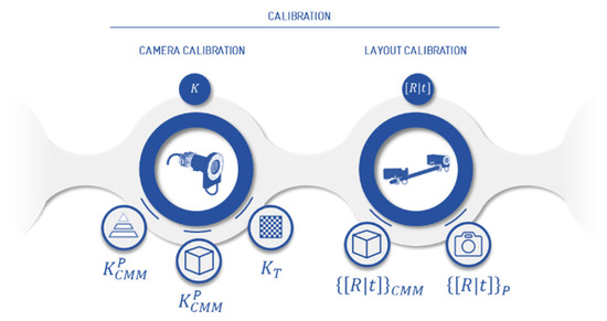 A pre-calibrated 3D pattern and Mendikute et al’s. [29] approach are the chosen strategies among the different alternatives to calibrate the camera parameters. The first consists of a flat pattern that is easy-to-use and allows the instrument to be calibrated in situ. In the second, a virtual grid is adapted to achieve, among other things, a well-conditioned extrinsic parameter and hence less uncertainty. The main drawback of the pattern strategy is the amount of solved extrinsic parameters, which propagates errors. The CMM virtual grid method, in turn, is a high-cost procedure that does not allow one to perform calibration in the measurement scenario itself.