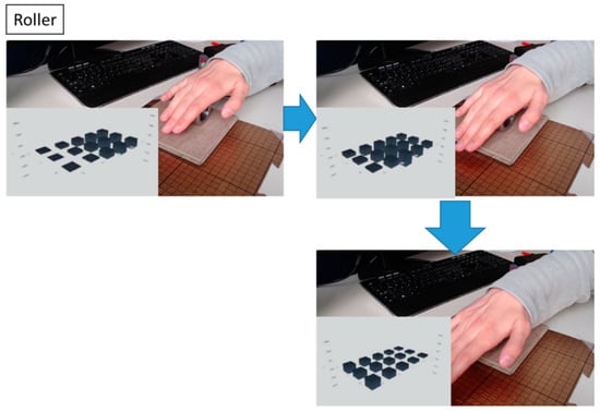 Testing of the sensor matrix with a roller moving over the matrix using the demonstration setup. The insets show the individual pixel responses, as visualized in the GUI. The matrix can clearly capture the movement of the roller. It also shows how the localized pressure applied by the roller on top of the floor spreads laterally in the sensor layer, thus creating a crosstalk between pixels. In this situation, a less dense matrix design could achieve a similar resolution with a reduced material effort and thus costs of fabrication. The established smart floor model helps optimize the pixel density for the individual use cases. The full video is available in the Supplementary Information (Video S1) together with other tested scenarios.