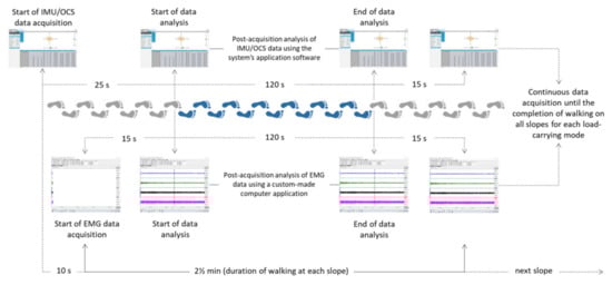 - Liu, Y.; Qiang, L.; Song, Q.; Zhao, M.; Guan, X. Effects of Backpack Loads on Leg Muscle Activation during Slope Walking. Appl. Sci. 2020, 10, 4890. [Google Scholar] [CrossRef]