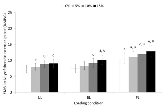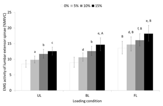 - Cook, T.M.; Neumann, D.A. The Effects of Load Placement on the EMG Activity of the Low Back Muscles during Load Carrying by Men and Women. Ergonomics 1987, 30, 1413–1423. [Google Scholar] [CrossRef]