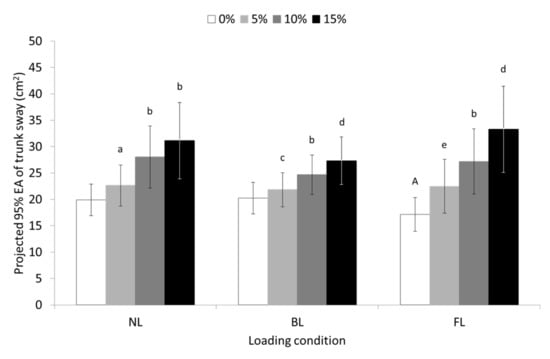 | Step length (cm) | 0% | 78.6 ± 4.1 a | 79.3 ± 4.3 A | 76.6 ± 4.3 b, B |