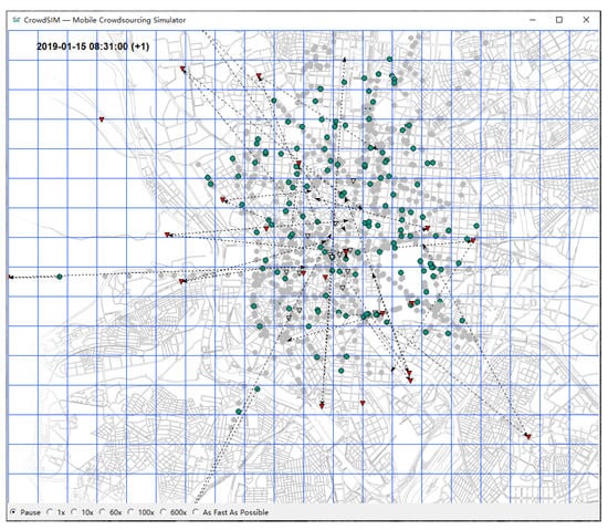 A possible method to prevent task failures, which has been successfully exploited in related domains [,], is to respond to failure-provoking events by strategically transferring tasks to more promising workers. If one worker is unwilling or unable to continue a task, another worker nearby may be willing and capable to complete the task instead. Task transfers are a promising technique because the crowd is heterogeneous. Crowdworkers use different transportation modes; they have different skills, experience levels, and preferences, and they have different destinations, routes, and travel patterns. Exploiting this heterogeneity, tasks that are executed too slowly by pedestrians can be executed more quickly by car drivers. On the other hand, bikes are less affected by road congestion and can travel under such conditions faster []. Hence, car drivers stuck in traffic may transfer their tasks to unaffected cyclists. Task transfers allow tasks to be executed faster and the system to behave more reliably. However, task transfers among crowdworkers have to deal with two main challenges: