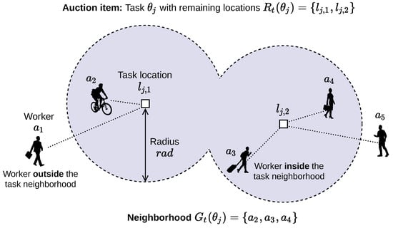 Explicit crowdsourcing is a problem-solving paradigm in which tasks are outsourced to an on-demand workforce of private individuals. Mobile crowdsourcing is often considered as a specific case of explicit crowdsourcing, where the outsourced tasks are spatial in character, and interested individuals use their personal mobile devices to temporarily join the crowd, find nearby tasks, complete the tasks, and earn rewards [,,]. Mobile crowdsourcing has been used for a wide range of purposes: