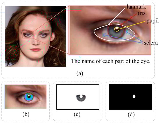 Following [45], we segment the iris and pupil regions using EyeCool, which adopts the U-Net [46] as the backbone. The segmentation results are shown in Figure 3b. EyeCool employs EfficientNet-B5 [47] as an encoder and U-Net as a decoder. Meanwhile, the decoder comprises a boundary attention module, which can improve the detection effect on the object boundary.