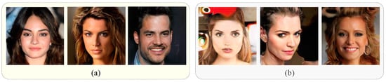 - Karras, T.; Laine, S.; Aila, T. A style-based generator architecture for generative adversarial networks. In Proceedings of the IEEE/CVF Conference on Computer Vision and Pattern Recognition, Long Beach, CA, USA, 15–20 June 2019; pp. 4401–4410. [Google Scholar]