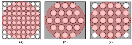 System sub-aperture layout: (a) 8 × 8 lens array; (b) hexagonal arrangement of 19 lenses; (c) 5 × 5 lens array.