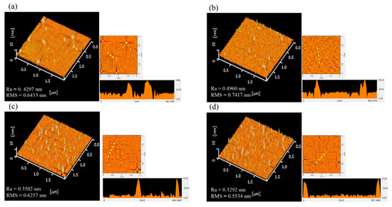 The surface of the SiNW-FET device was cleaned using the oxygen plasma cleaner (Harrick Plasma, New York, NY, USA) before the surface modification. Each n-type SiNW-FET device had two nanowires, and each nanowire had a length of 2 μm and a width of 200 nm [20], measurements that had been used in previous reports [20,21,22,23]. The SiNW-FET measurements were carried out on the chip-on-board (COB) detection platform provided by Helios Bioelectronics, Inc. (Hsinchu County, Taiwan). Atomic force microscopy (AFM; SPA-400 DFM, Seiko, Japan) was utilized to analyze the surface roughness of the FET surface after each modification step. In addition, X-ray photoelectron spectroscopy (XPS; Thermo VG-Scientific, Loughborough, UK) was applied to identify the elemental composition and chemical state of the SiNW-FET surface.