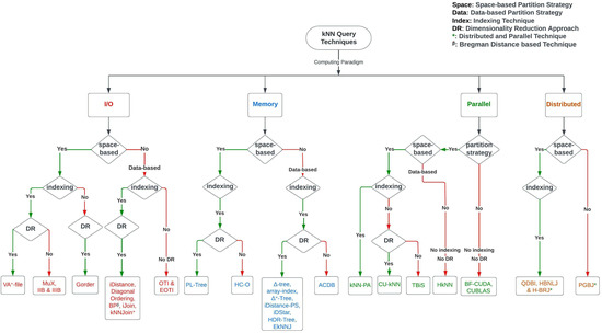 Block flow diagram of kNN query techniques based on the different classification categories.