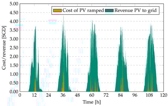 Figure 3 shows the associated costs due to ramped PV and revenue of PV to grid for an electricity price of SGD 0.2/kWh for PV.