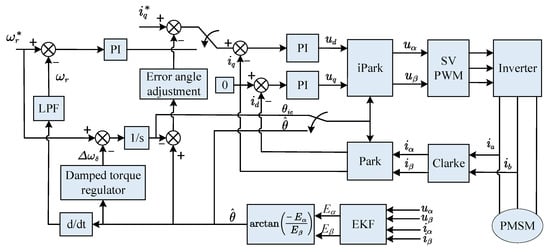 Figure 1 depicts the block diagram of the PMSM speed open-loop I/F startup system [