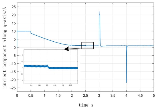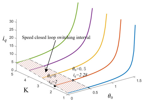, the stability of the system will be greatly reduced. According to Formula (20), the relationship between the current and the error angle in the steady-state of the speed can be obtained as follows:
