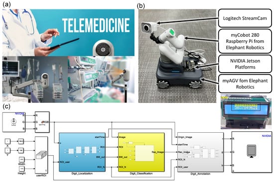 A real-time optical digit recognition embedded system for monitoring patients in ICUs. (a) A concept of ROMI for monitoring patients in ICUs. (b) Hardware prototype of ROMI. (c) System configuration of ROMI in Matlab Simulink.