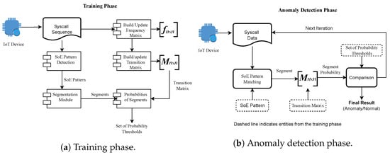 Based on our study of existing approaches, we found that host-based anomaly detection approaches are more effective than network-based approaches and that host-based approaches can be further extended to collaborative or distributed anomaly detection systems. By analyzing existing IoT anomaly detection approaches, we discovered that syscall data can be very effective for anomaly detection in IoT and can provide an excellent trade-off between generalization and . Table 1 represents a summary of the related studies focusing on the used approaches, methods, and datasets. Regarding the existing syscall-based IoT anomaly detection approaches, we found that these approaches lack (a) an automated and dynamic mechanism for the conversion of long syscall sequences into individual training/test examples, and usually, this is done empirically, and a suitable length is selected for which model performs best; (b) a method to automatically determine the extent to which the system can deviate from normal, usually a threshold is used for this purpose, which is empirically determined. These two issues impose great restrictions on the generalization of anomaly detection approaches in this area.