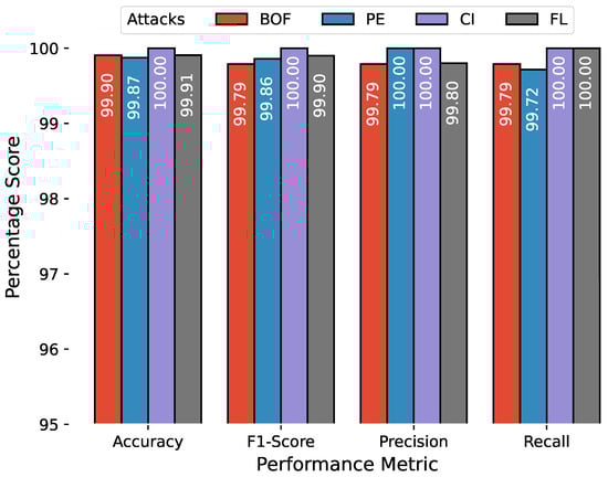 To safeguard smart devices against cyber threats, IoT security has been actively researched from various perspectives and various approaches have been proposed [,]. The developed approaches can be broadly grouped into two categories: signature-based and anomaly-based approaches [,,]. Signature-based approaches use the characteristics of existing attacks to build detection models that are typically robust against known attacks. However, they lack the ability to handle novel attacks and must be updated consistently. Anomaly detection approaches model the normal behavior of the target system and detect deviations from it; these deviations are considered anomalies or malicious activities. These approaches have some advantages over signature-based approaches, as they can detect novel and unknown attacks and require only normal data for training. Anomaly detection approaches, however, have their own limitations; the chief among them is learning all benign behaviors and a high false-positive rate.
