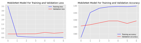 The implementation with the suggested MobileNet-SVM model was executed on Python 3.9 using the Juypter Notebook interface. The Keras open-source library and the Tensor-flow platform were used to build the model. It employed a CategoricalCrossentropy loss function and the SGD optimizer with a baseline learning rate for training. The outcomes of the suggested MobileNet-SVM model focus on the following: