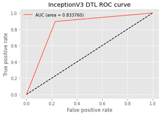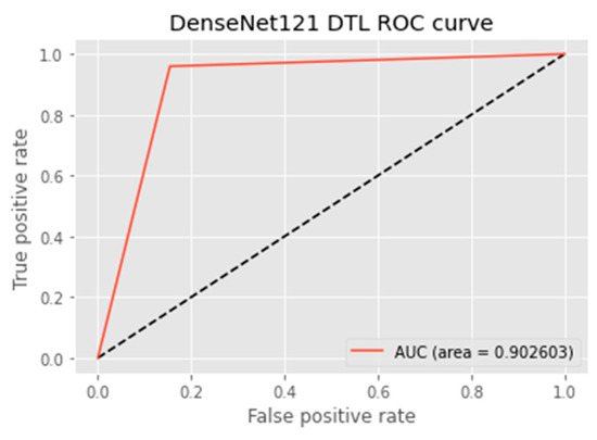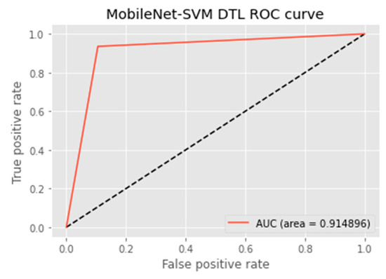 Researchers evaluated the effectiveness of the suggested model with cutting-edge methods to reflect the scalability of the suggested methodology. As indicated in Table 7, it was established that the proposed hybrid DTL system surpassed baseline methods with an accuracy of 91.3%, precision of 89.4%, f1-score of 91.3%, AUC of 91.5%, and FPR value of 0.1008. However, the DenseNet121 baseline model performed best in terms of recall, i.e., of 95.4%. Upon evaluating the suggested model with cutting-edge techniques, there was little variance in misclassification. It can be deduced in Table 7 that the proposed model outperformed other baseline models because of the SVM that is combined with the MobileNet model. The proposed model also used regularization techniques, such as L1 and L2, for experimentation.