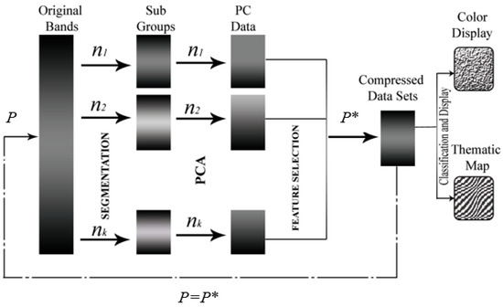 - Jia, X.; Richards, J.A. Segmented Principal Components Transformation for Efficient Hyperspectral Remote-Sensing Image Display and Classification. IEEE Trans. Geosci. Remote Sens. 1999, 37, 538–542. [Google Scholar]